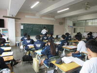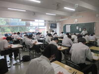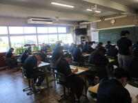 3年生は実力テストを実施しました。テスト中は時間いっぱい集中して問題に向き合い、休み時間は気になる問題を周りと確認したり次の教科の確認をしたりしました。進路決定・進路実現に向けて自分を振り返る機会にしてほしいと思います。1,2年生は、卒業生に学ぶ会を実施しました。今のうちにできることや考えておくべきことをわかりやすくスライドにまとめ、丁寧に説明してくれました。また、興味のあることを調べたり挑戦したりすることや自分の考えをもち、相手にわかりやすく伝えることの重要性を学びました。1,2年生も積極的に話を聞き、イメージを膨らませることができました。先輩の活躍している姿を直接見聞きし、自分事として考える素晴らしい機会となりました。