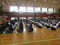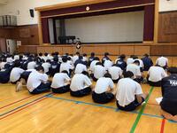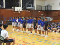 熱中症警戒アラートが発令されましたが、体育館の冷房もあり快適な環境の中で葛北大会激励会を実施することができました。各部活動ともに事前に練習をして臨み、堂々と決意を表明する姿は立派でした。校長先生からは、「体調管理に気を付ける」「支えてくれた人に感謝する」「大会に臨む気持ちをしっかりつくり、自分自身や仲間を信じてやり抜く」などの話がありました。八木中の代表選手として、最後の最後まで全力で頑張れ!!!応援しています!!!