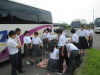 早朝の集合でしたが、元気に会話する姿がたくさん見られました。スローガン「輝(ひかり)~自立への道~」の達成に向けて活動してほしいと思います。そして、自分たちで行事を創り上げ、一層成長した姿で戻ってくることを願っています!保護者の方々、朝早くからの準備やお見送りにきていただき、ありがとうございました!