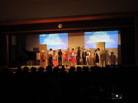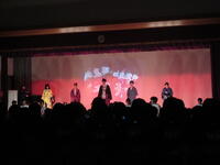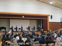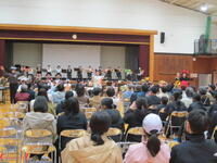 吹奏楽部が昨年度に引き続き、恒例となったスプリングコンサートを実施しました。スプリングコンサートは、ソロ・アンサンブルステージ、クラシックステージ、ファンタジーステージ、ポップスステージの4つの構成となっており、ラシックステージでは、長崎小学校音楽部の皆さんと一緒にク「ゴールデンジュビリー」を演奏しました。会場には多くの保護者の方や生徒の皆さん、先生方が観覧に来ていただき大いに盛り上がりました。吹奏楽部の皆さん、長崎小学校音楽部の皆さん、お疲れ様でした。また、観覧に来ていただいた保護者の方や生徒の皆さん、ありがとうございました。