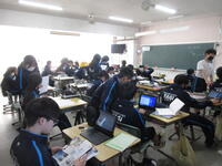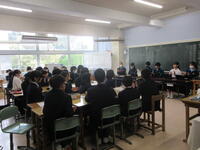 図書館司書の河野先生と国語科の佐藤先生が、1年生に本の調べ方について教えました。また、校長先生や教頭先生のブックトーク(オススメの本の紹介)を聞き、本の素晴らしさや楽しさを感じる機会となりました。実際に図書室にある本をすぐに手に取って読んでいました。授業の最後には、好きな本・興味のある本を借りる生徒がたくさんいました!読書を通して活字に慣れ、知識を増やすとともに現実ではできないことを疑似体験することができます。今年度も新しい本をたくさん取り入れる予定なので楽しみにしてください。広々とした空間でリラックスしながら読書に親しんではいかがでしょうか。きっと、心の栄養にもつながります!