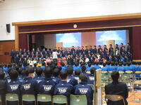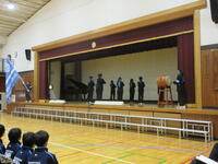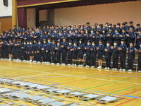 3年生は鬼滅の刃で全力で取り組むこと、諦めない心、団結することの大切さについて、2年生はOne Pieceで「八木中三本柱」について新入生に伝える、本当に素晴らしい発表でした。準備期間が3年生を送る会よりも短い中、クオリティの高い発表を披露しました。その姿から先輩として、最上級生としての決意が感じられました。1年生は、「祝いの手打ち」で団結力を発揮しました。元気のある発声とともに息の合った手拍子で2,3年生に感謝を伝えました。