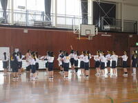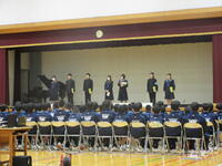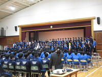 すでに学年末テストが終了している3年生は、4校時の時間に体育館で3年生を送る会の歌練習に取り組んでいました。