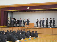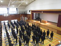 3/8(金)の卒業式に向けて卒業式練習が始まりました。緊張感のある中、はじめに卒業式に臨む気持ちや礼法についての話がありました。その後、式の流れの確認を進めていきました。限られた練習時間の中ですが、厳粛かつ整然とした中に、温かく感動のある卒業式となるよう、それぞれの生徒が主体的に取り組み、それぞれの節目になるようにして欲しいと思います。