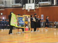 3年生を送る会を実施しました。1年生はワンピースで「偉大なる航路」、2年生は鬼滅の刃で「ドラジャの刃~八木村編~」、3年生は「THE LAST MAGIC ~最高で最幸な学年~」の題名で発表を行いました。1、2年生は3年生への感謝を、3年生は後輩、保護者、先生方をはじめ、関わってくれたすべての人への感謝の気持ちが表れた本当に素晴らしい発表でした。いよいよ、来週の3/8(金)は卒業式となります。