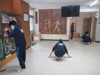 昨日は学年レクでおおいに盛り上がっていた3年生ですが、今日は、3年間お世話になった八木中学校への奉仕活動、ボランティア活動、教室清掃を行いました。普段の清掃活動等では時間がなく、なかなか手が回らない場所を中心に取り組んでくれました。最後は、教室のワックスがけも行っていました。