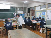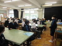 各教室に移動し、今年度から新たな取り組みとして企画した、「3年生から学ぶ」授業を行いました。3年生も小学生もお互いに緊張している様子でしたが、子どもたち同士で中学校の様子を伝えたり、質問したりすることのできるいい時間に感じられました。