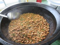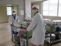 調理員さんは、朝早くから出勤し、大きな鍋で大量の給食を作ってくれています。