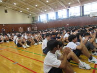 先週までの暑さから一変、秋の空気が感じられる日となりました。本日、シスター結団式が行われました。応援団・ダンスリーダー・先生方の紹介をし、応援や演舞の練習をしました。3年生の体育祭への熱い想いが1,2年生にも伝わったことでしょう!一人ひとり持てる力に違いはあるけれど、それぞれが最高の自分を目指すことで成長し、絆が生まれ、達成感につながります。支え合いながら、楽しみながら練習に励み、思い出に残る体育祭となることを願っています!