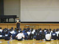 生徒指導主任の曽合先生からはちょっとの気遣いをしていこうとのお話がありました。迷惑をかけない、周りを助ける、GIVE and TAKE など、キーワードがたくさんありました。また、自転車の乗り方について改めて確認をしました。安全を守るために、一度立ち止まることも選択肢に入れてほしいと思います。