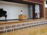 校長先生からは、夏休みに能登町に視察に行って学んだことや感じたことを交え、苦しいことや大変なこともあるだろうけど、今の環境に感謝し、自分に何ができるかを考えてほしいとのお話がありました。また、自然災害への対応として9月中に保護者の方へ調査メールを送付しますのでご協力をお願いします。