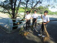 2学期もよろしくお願いします!夏休み中、各部活動で落ち葉掃きをしてくれました。本日も応援団を中心に集まり、きれいな環境を維持することができています。そして、落ち着いた雰囲気で始業式を行うことができました。