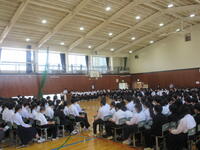 1年生が1学期のまとめとして学年集会を行いました。学級委員が成果と課題を伝え、小林先生から夏休みの過ごし方(学習の進め方や生活リズム)について話がありました。佐藤先生からは、日常生活で体験したマナー(みどりの窓口)について話がありました。自分のペースで学習を進めたり、部活動に熱中したり、興味のあることに時間を割いたり、家族との時間を充実させたり・・・楽しく有意義な夏休みになるにはどうすれば良いかを考え、実現できることを願っています。