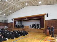 令和5年度修了式を行いました。修了式の前に生徒活動報告があり、全校委員長から成果や課題についての話がありました。修了式では校長先生から、「あいさつ・清掃・歌声の八木中三本柱の取り組みについて振り返り、さらに質を向上させて欲しい。」との話がありました。修了式後には生徒指導主任から、令和5年度の学校生活での様子について振り返り、春休みの過ごし方、職員室への入り方の確認についての話がありました。また、地域の方から生徒の登下校での自転車の乗り方や挨拶が非常に良くなったとのお褒めの言葉をいただいていることの話がありました。生徒の意識向上が行動として表れていることをとても嬉しく思います!