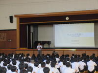 生徒指導主任の曽合先生からはちょっとの気遣いをしていこうとのお話がありました。迷惑をかけない、周りを助ける、GIVE and TAKE など、キーワードがたくさんありました。また、自転車の乗り方について改めて確認をしました。安全を守るために、一度立ち止まることも選択肢に入れてほしいと思います。