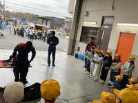 消防車や救急車を間近に様々な装備の説明を受けたりしました。