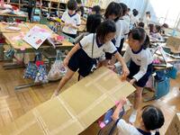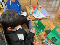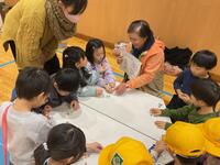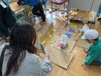 手作りおもちゃを使って遊ぶコーナーをいきいきとグループで協力して作っていました。
