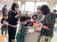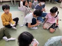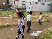 シャボン玉ができそうな道具や大きなシャボン玉の作り方や連続でシャボン玉ができる方法などを工夫してみんなで楽しんでいました。