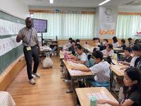 4年生の教室では英語の学習をしていました。アルファベットの小文字を読む練習です。