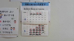 どうもこんにちは トレインです。 今回は、元気にあいさつ八木北小という校長先生が行っているものについて紹介します。 この写真の一つは、6月5日に撮った写真です。 1番できていたのは4日747人でした。それは5月、6月の中で1番のできでした。 校長先生は、新南門にいつも朝いるので皆さんで目を見て挨拶をして1年間で新南門を通る人全員が挨拶できるようになりましょう。 そして校長先生に限らず、地域の方々、旗振りを行ってくれる先生方、保護者の方にもしっかり挨拶をしましょう。 流山にある小学校の中で一番のできにしましょう! これは会議室の近くに貼ってあるので時間があったら(仲良しタイムや昼休みに)見てみてください。 これは最新ではないので自分で見るのが一番だと思います。 ではパート2もお楽しみに~ |