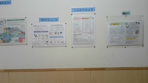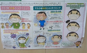 どうもこんにちは!友達いっぱい「おにぎりくん」です! 今回は保健ニュースについてです! その内容は、その名の通りマスクや感染症についてが書かれていました! さらに、普段は知らないことや、アドバイスを書いてくれているのでぜひ見てください! 場所は保健室の手前にはってあります! ではまた~さようなら~ |