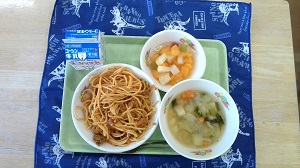 初めまして!今日から一年間八木北小の魅力や行事など紹介していきます!とろろ昆布です!✨ 今日の献立は、スパゲティーミートソース、ひよこ豆のスープ、フルーツカクテルです! スパゲティーとフルーツカクテルは大人気! スパゲティーミートソースはモチモチの麺にミートソースが絡まって絶妙な美味しさ✨ フルーツカクテルはフルーツとカラフルなカクテルがきれいで大人気なデザート!大人気メニューなのも納得です! 以上とろろ昆布でした! |