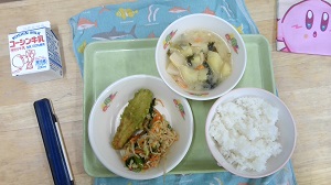 どうもこんにちはもやしです。 本日の給食は ごはん、ささかまのまっちゃあげ、やさいのごまずあえ、ぐだくさんみそしる、牛乳です。 本日は八十八夜に関係する給食です。 みなさんしっかり食べて元気に過ごしましょう! |
