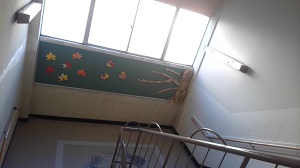 どうも、二学期初めての投稿日本ざめ君です。 今回学校で見つかったある季節に合った掲示があったので紹介いたします。 ここは八木北小学校のなのはな学級の階段のところです。まるで本物のようなモミジのようできれいですね!ほかにもなのはな学級の掲示のところにももみじなどがたくさんありました。 なので学校に来られましたら、ぜひ見学してください。 |