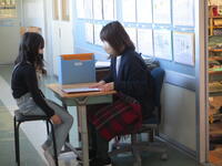 今日、明日と校内書初め展が実施されています。今日は、2年生が1年生の作品を見にきていました。自分自身の成長が感じられたかな?