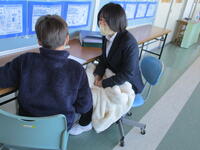 6年生は、英語の時間に中学校に行ってやりたいことを英語でどのように話せばよいのか学習をしていました。文が出来上がると、先生たちに聞いてもらって確認していました。何度も修正をしながら、よりよいものにしていきました。授業参観で披露する予定だそうです。