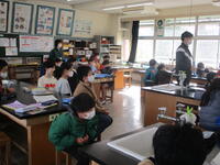 3年生は、2学期から引き続き、総合的な学習の時間で、ネギを広めるための学習をしています。今日は、広報活動について勉強したいと、流山市役所のマーケティング課に指導の依頼の電話をすることになっていました。音声が他の児童にも聞こえるように設定した電話で、代表児童が電話する様子を、他の児童も固唾をのんで見守りました。電話が終了し、マーケティング課の方が学校に来てくださることになったときには、みんなから拍手が起き、さあ次に何をやったらいいのかと、子供たちの意欲はますます高まっていきました。