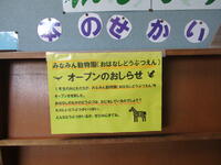 今、図書室ではみなみん動物園(おはなし動物園)がオープンしています。これは、1年生が、動物が出てくるお話を紹介するために作ったものです。お話の中で、動物はどんなことをしているのでしょうか。ぜひ、本を手にとって読んでみてください。