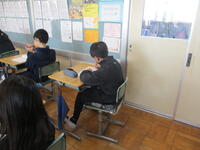 3年生は、3学期に頑張りたいことを書いて、掲示物を作っていました。絵馬をかたどった用紙の中に、「サッカーがうまくなりたい。」「字を丁寧に書く。」「野球を頑張る」など、子供たちの頑張りたいことがたくさん書かれました。菅沼先生から、「これは、校内書初め展の時に、お家の人に見てもらいます。」というお話があったので、子供たちも「えっ!」と少し緊張して書いていました。完成が楽しみです。