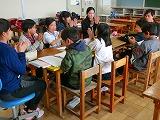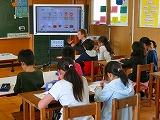 3校時、3年生は、ALTのジェームズ先生と外国語活動を行っています。英語で説明を聞いてその内容に合った国名を答える問題に積極的に取り組んでいました。