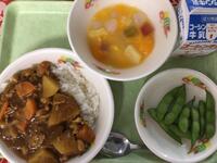 今日の給食は『カレーライス、枝豆、オレンジポンチ』でした。