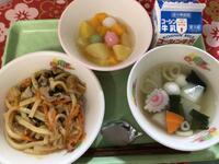 今日の給食は『キムチ焼きうどん、冬瓜の中華スープ、フルーツ白玉』です。