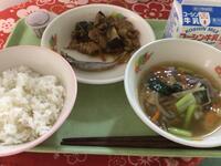 今日は『ごはん、ししゃも、茄子の肉味噌炒め、沢煮椀、一口ゼリー(グレープ)』と野菜たっぷりメニューでした。
