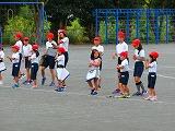 朝の応援練習、気合いが入っています!今年の応援賞は、紅組か? それとも白組か? 明日の運動会が楽しみです!!