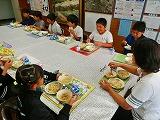 給食最終日ということもあり、全員の顔が見えるように大きな円になって食事をしているクラスもありました。
