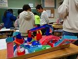 5年1組の図工の時間、完成した作品の相互鑑賞を行っています。実際にビー玉遊びをしながら、仲間の優れた点を評価していました。