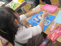 1年生は、3~4時間目に図工の学習をしていました。「冬休みに楽しかったこと」を粘土で表現します。久しぶりに触れる粘土は、少し硬くなっていたので、小さくして丸めたり伸ばしたりして柔らかくしてから作業に入っていました。「雪だるま」や家族と出かけた「水族館」、おじいちゃんの「バースデーケーキ」、「年越しそば」など、楽しい思い出の作品がたくさん出来上がりました。「見て!」と熱く話しかけてくる児童もいれば、作品を指さしながら少し照れくさそうにアピールする児童もいましたが、どの子も説明には熱がこもっていて、聞くのがとても楽しかったです。