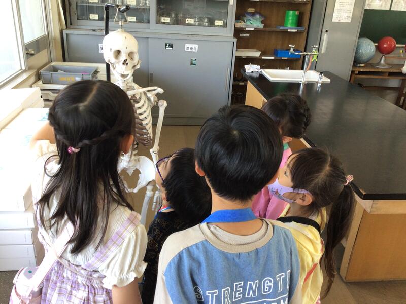 理科室にはガイコツが!すこし怖いけど、じっくり観察していました。
