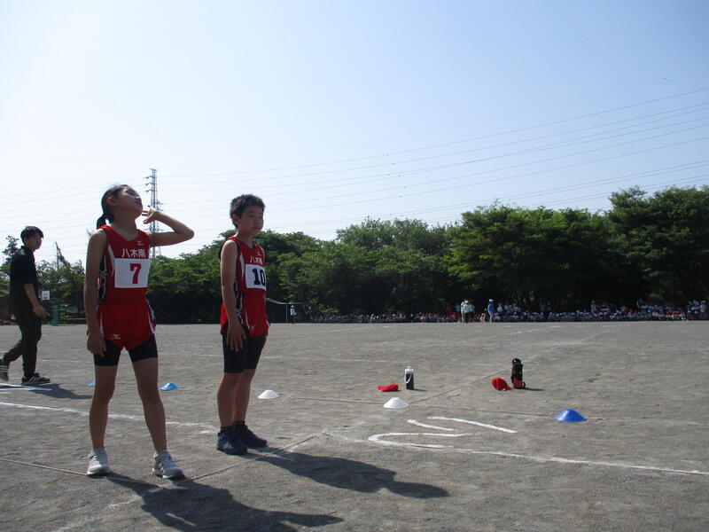 陸上競技大会にふさわしい最高の天気のもと、八木南小の子どもたちは、代表選手として立派な態度で競技に臨みました。