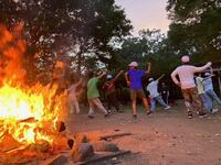 火を囲んでレクリエーションやフォークダンスを行いました。