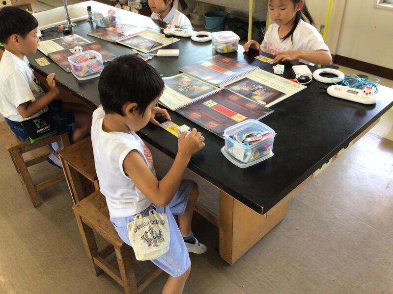 6月~7月にかけ、本校でもtoioを使った学習に取り組みました。初めて取り組む1年生も、これまで何度も取り組んでいる6年生も、同じ教材を使って、楽しく遊びながらプログラミングについて学んでいました。