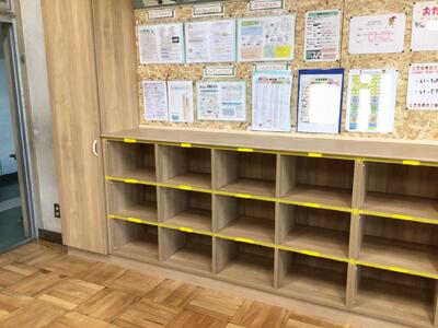 新しくなったと言えば、1年生の教室。ロッカー、床、清掃用具入れ、背面の壁。新しい木のいい匂いがします。子供たちもびっくり、そして嬉しそうです。