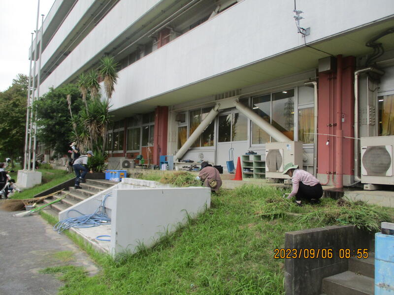 非常に暑い中での活動でしたが、多くの保護者、地域の方々に参加していただき、元気よく伸びていた草も、