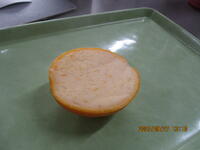 お楽しみ給食は、オレンジシャーベット。暑くなってきたお昼の時間帯には、とても嬉しいプレゼントでした。
