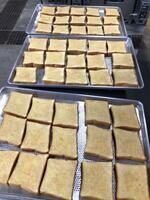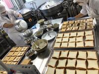 今日の一番人気はシナモントーストでした。マーガリン、砂糖、シナモンを混ぜたものをパンに塗って焼きますが、調理員さん方は、耳までおいしく食べられるようにと、パンの端まで丁寧に塗って作ってくださいました。