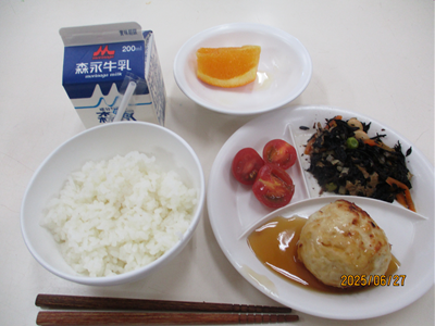 ごはん 鶏つくね ひじきの煮物 ミニトマト